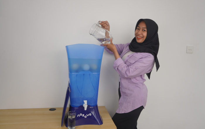 Sekarang tidak perlu beli galon lagi, tinggal tuang air keran ke filter air Nazava hasilnya langsung bisa diminum. jadi hemat banyak dan lebih praktis!