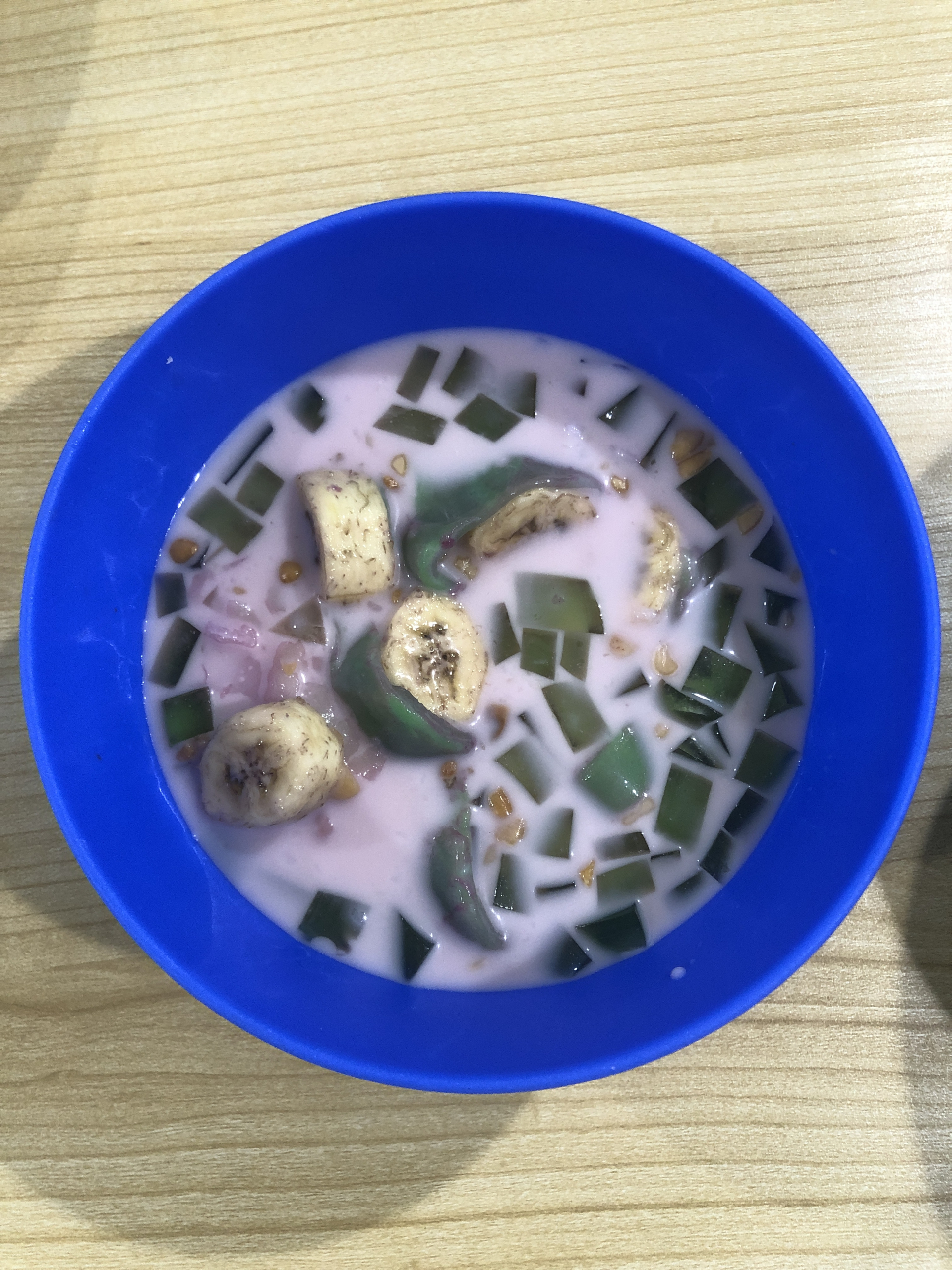 Salah satu menu menarik lainnya adalah es pisang ijo. Sesuai dengan namanya, es pisang ijo menggunakan bahan utama pisang yang dibalut dengan adonan tepung berwarna hijau biasanya dilengkapi dengan berbagai isian lainnya.