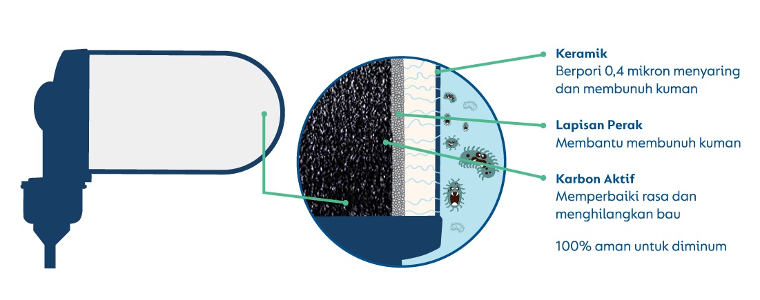 Nazava.com – Filter air minum Nazava menggunakan teknologi filter keramik untuk menyaring air mentah menjadi 100% aman untuk diminum. Keunggulan dari filter keramik telah terbukti secara ilmiah sejak 1827. Teknologi filtrasi keramik itu kemudian disempurnakan kembali dengan Nazava menggunakan teknologi Belanda dan diberi Nazava PROT3CT. Nazava PROT3CT adalah satu-satunya teknologi penyaring yang digunakan di semua jenis filter air minum Nazava untuk mendapatkan air minum yang lebih aman dan bebas bakteri.